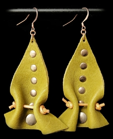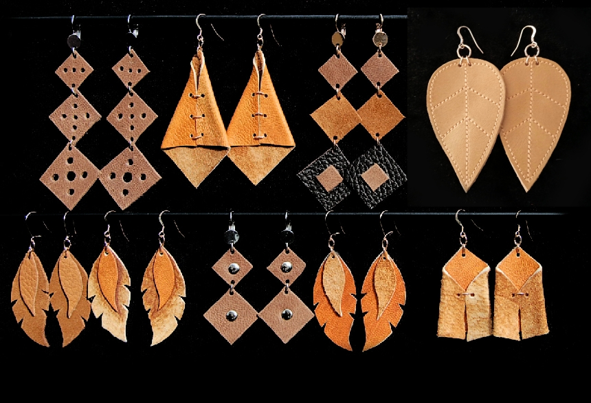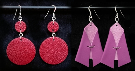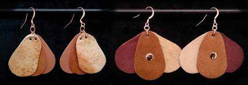 Boucles d’oreilles en cuirs de chèvre, vachette, agneau.