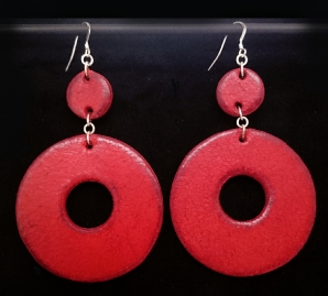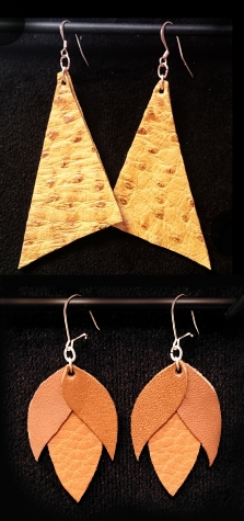 Boucles d’oreilles en cuirs de chèvre, vachette, agneau, autruche, liège, bois. Prix